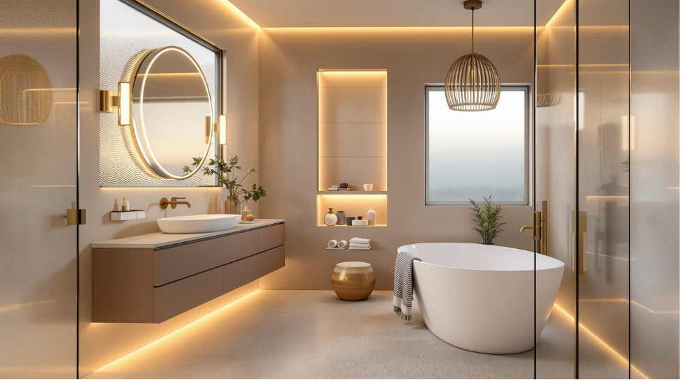 - Layered lighting: Mix overhead, vanity, and accent lights so you can adjust based on the time of day. Morning routines and evening wind-downs feel different. Your lighting should too.