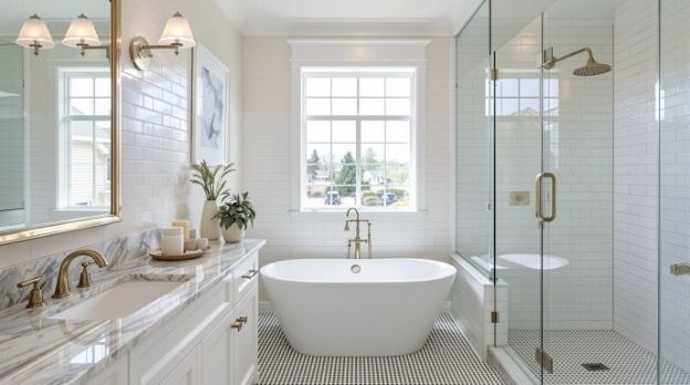 - Color often does the heavy lifting in a blended bathroom: Most Granger homeowners end up choosing soft neutrals — warm whites, greige tones, subtle taupe's — because they work well with both traditional trim and modern tile.