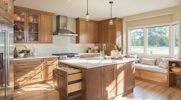 A well-designed island can support cooking, homework, and entertaining all at once. Think extra-deep drawers, seating on two sides, more prep space, and a couple of outlets for charging devices or plugging in small appliances. When the island works well, everything else feels easier.