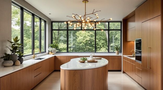 Lighting is another area where you can introduce mid-century character right away. A single new fixture can shift the whole mood of the room. Globe pendants, slim cylinder lights, or warm brass accents all fit naturally into the style without asking your kitchen to pretend it’s something it isn’t. When lighting and layout work together, the space feels brighter, easier to navigate, and more enjoyable to use on a daily basis.