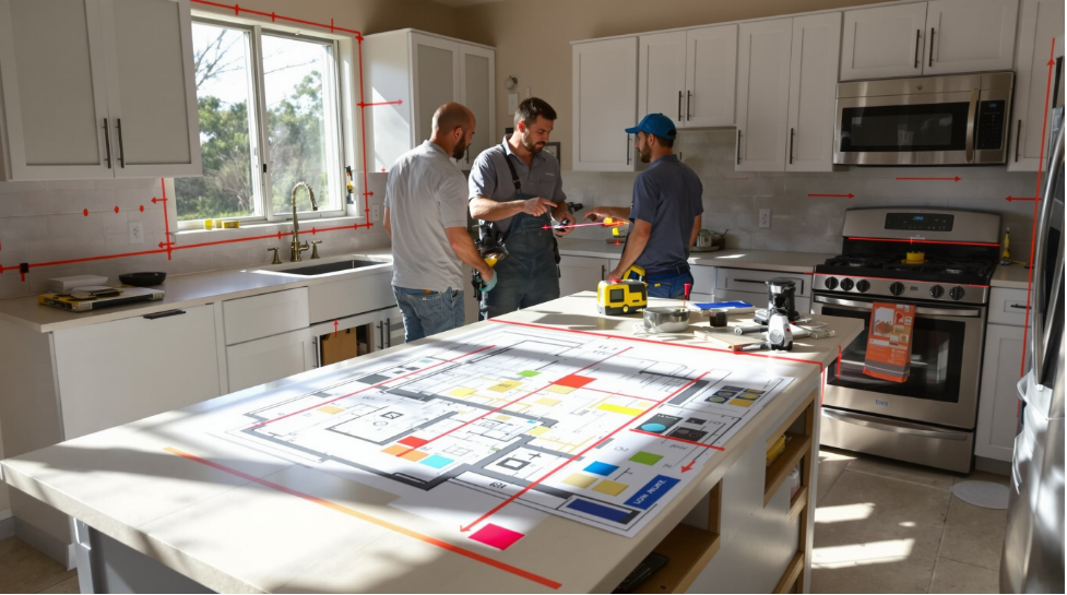 A design and supply specialist covers cabinets, countertops, windows, and doors. Structural changes, plumbing, and electrical are contractor territory. Both sides need to know the plan before anyone picks up a tool.
