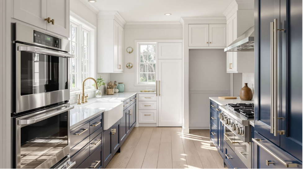 Mouser, Wellborn, and Waypoint are built for exactly this kind of situation. Box construction, cabinet depth, and finish quality all determine how well kitchen cabinets hold up in a space with slight irregularities. Trends shift, but well-built cabinetry in a good layout still looks great 20 years from now.